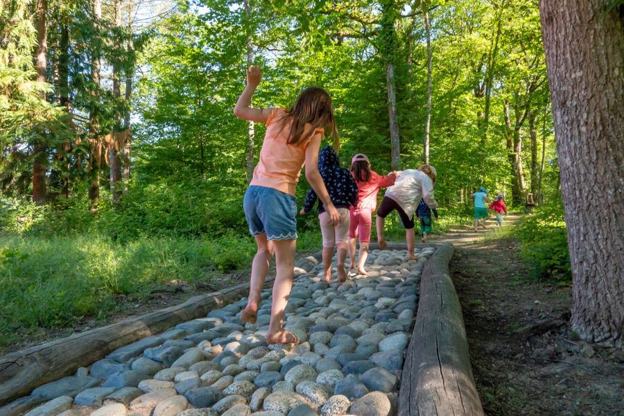 Here is an ideal sensory trail for children and families designed to awaken the senses and lead to relaxation. You will find the starting point just behind the kiosk in the Parc Le’h. Walk along this 550m barefoot path where you will encounter stations with squares filled with different materials, bridges, and balance stations. Enjoy the surroundings as well as the easy access, and for dirty feet at the end of the trail, don't worry, you will find small showers.