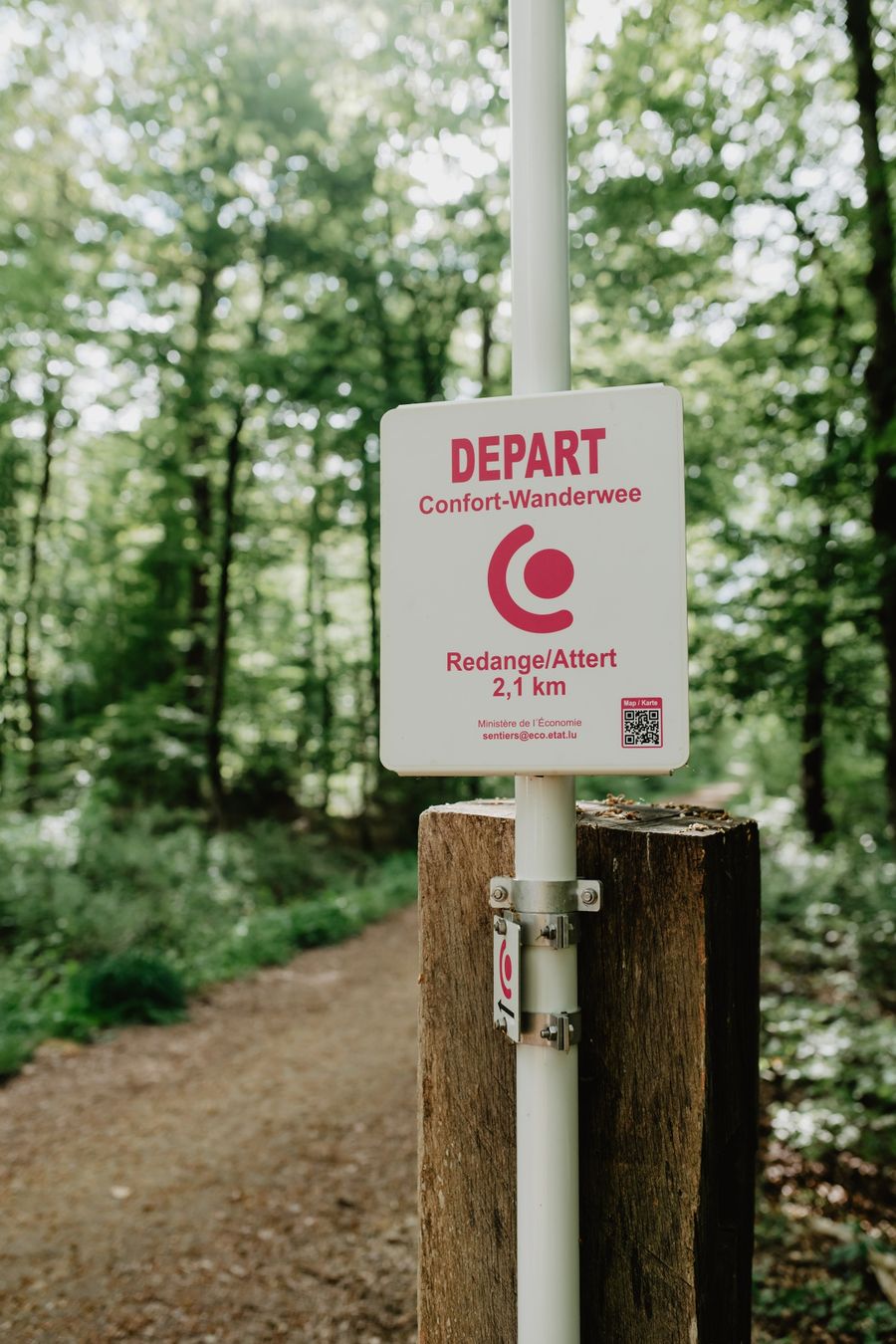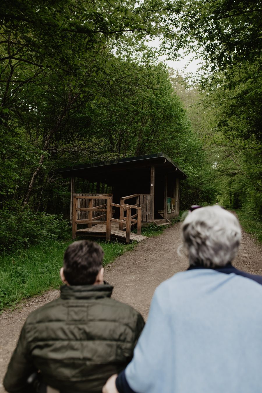 The trail begins at the nature-friendly parking area near the forest cemetery in Redange. This 2.1 km circular trail offers a relaxed nature experience for everyone – whether using a wheelchair, a walker, a stroller, or simply enjoying a leisurely walk.