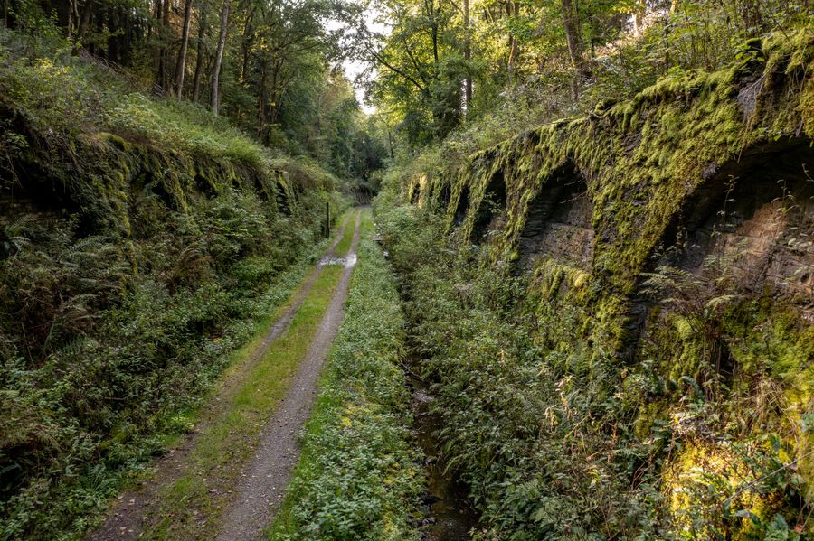 This section of the "Vennbahn" runs between Troisvierges (L) and Lengeler (B) and was built between 2012 and 2013. This Interreg IVA project "Vennbahn" supports the construction of a bicycle route connecting Aachen via Raeren, Monschau, Waimes, St. Vith and Burg-Reuland with Troisvierges on the route of the former railway line, called "Vennbahn". It runs through three countries and has a total length of 125 km, of which 7 km are on the territory of the Grand Duchy of Luxembourg. On the Luxembourg side, the upgrade of the "Vennbahn" between Troisvierges and Lengeler (B) took place in two phases, namely phase 1 between Troisvierges and Goedange with a length of 4.2 km and phase 2 between Goedange and the Belgian border with a length of 2.8 km, on the route of which is the 800 m long border tunnel Huldange / Lengeler.
