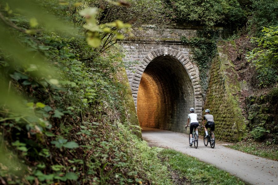 From the capital through the modern Kirchberg district to the Müllerthal region with its spectacular rock formations - and all along the old narrow-gauge railway track "Charly"!