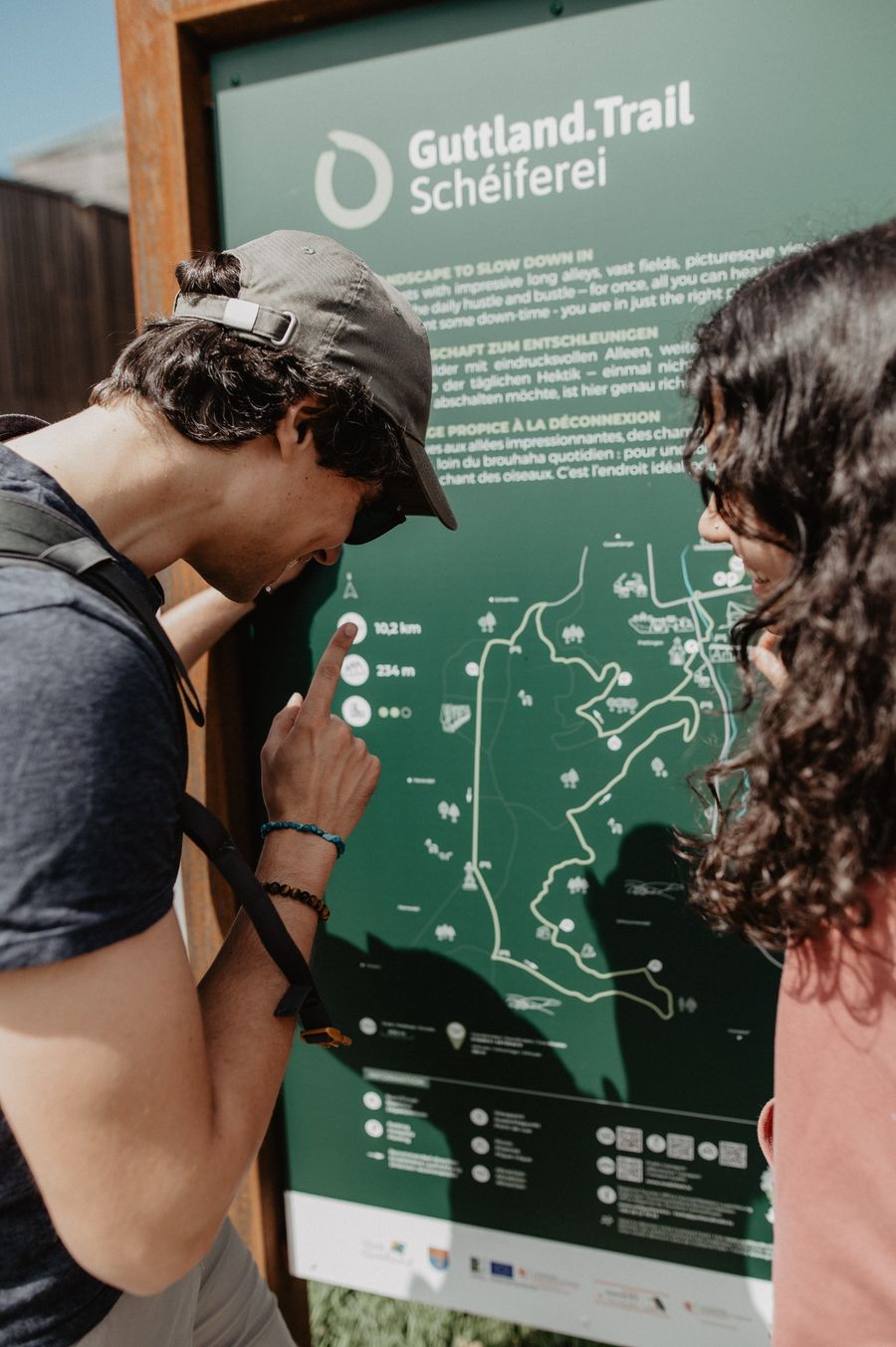 The hiking trail is marked in both walking directions. Please follow the white-green waymarks.