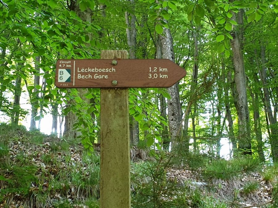This hike leads on forested paths around the village of Bech. The route starts at Becher Gare. In the beautiful former train station building there is now a microbrewery. Next to it is a restaurant. Initially, the hike goes through the village and then along the Sauerbaach. Then it enters the forest and returns to the starting point along quiet forest paths and past impressive rock formations.