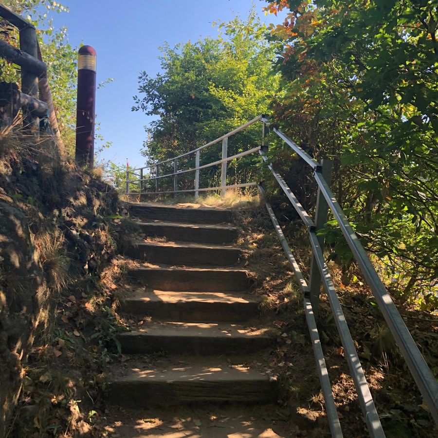 At the end of the hike, you reach the viewpoint Verluerekascht near Larochette. Here you are rewarded with an impressive view of the town and the opposite castle ruins.