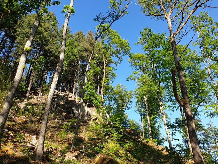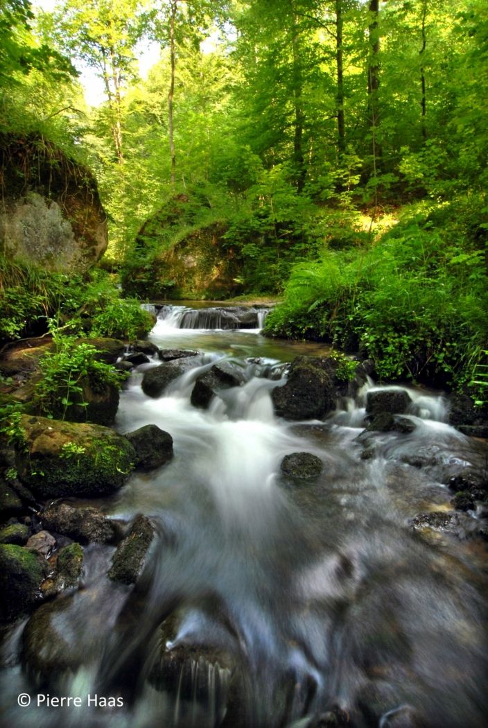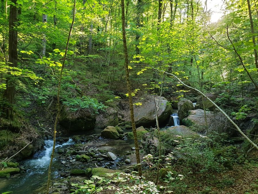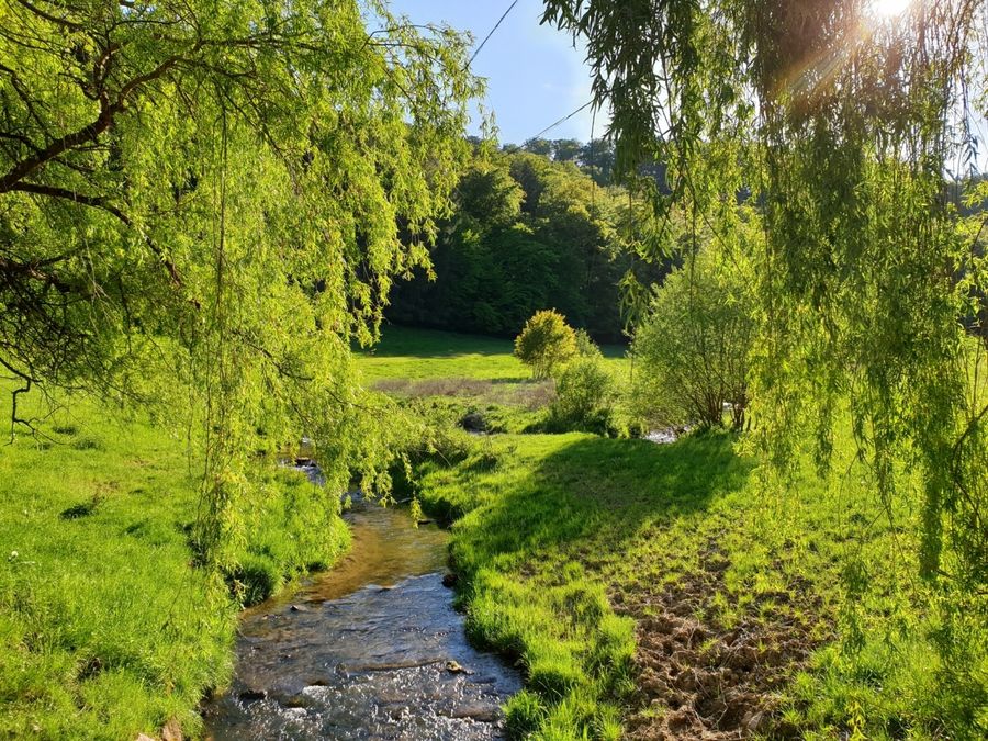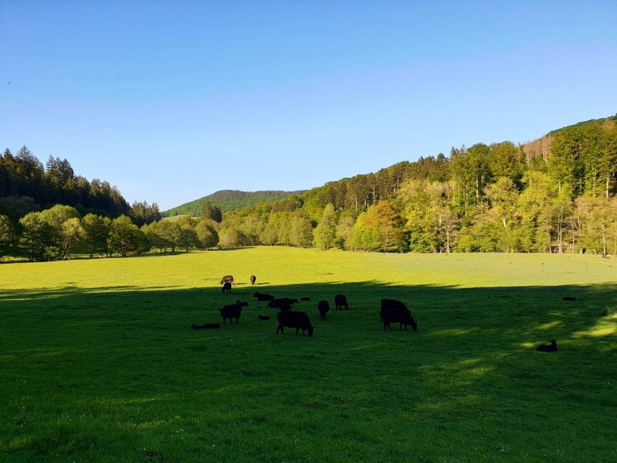 From the parking lot on the edge of Haller, this 10 km long hiking trail first leads on a long descent through meadows and forests into the Schwarze Ernz valley. With a bit of luck, you will see the famous Black Angus cattle along the way, which are highly valued by meat lovers far beyond the region’s borders. Through the beautiful valley of the Halerbaach with its impressive rocks along the stream, you finally return to the starting point.