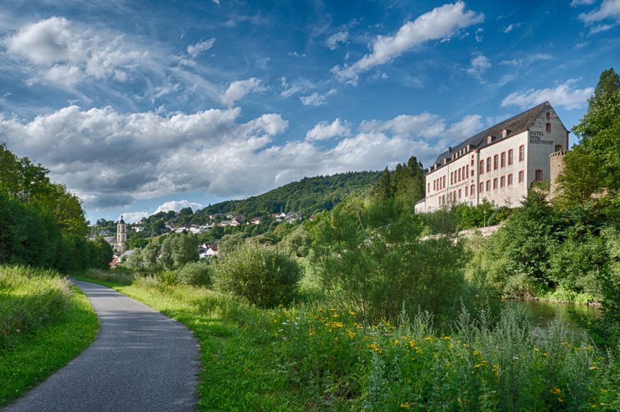 Bollendorf-Pont: Like several other towns on the Sauer, Bollendorf was divided in 1815: the Congress of Vienna assigned the Bitburg area east of the Sauer, which belonged to Luxembourg, to Prussia. Thus, Bollendorf, on the eastern bank of the Sauer, belongs to Germany today. The castle there was once the summer residence of the abbots of Echternach.