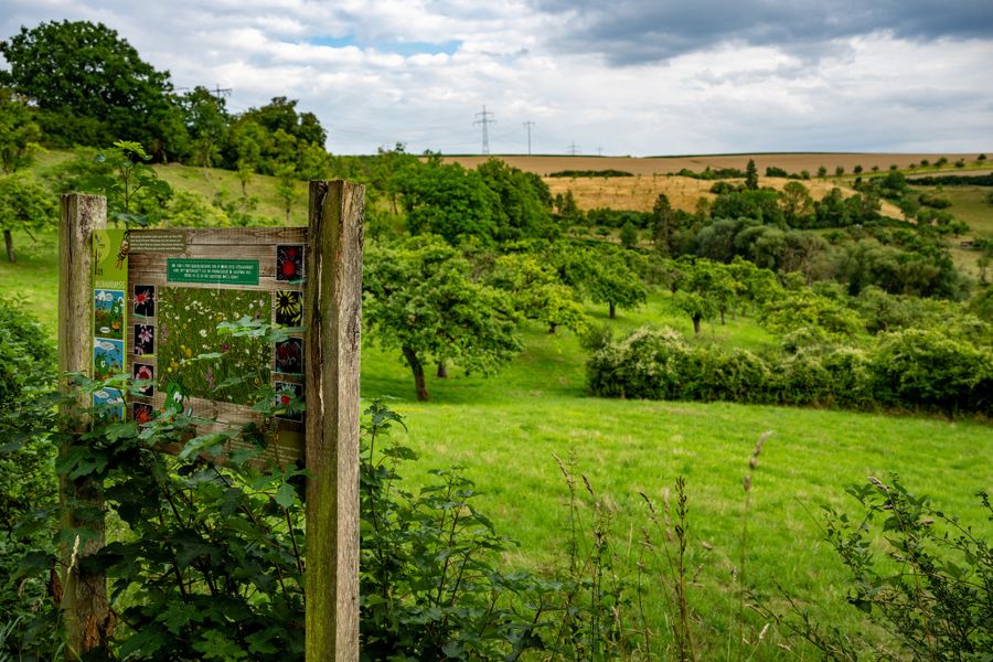 The 3 km long nature adventure trail leads through a varied environment with hedges, orchards, small streams and an old limestone quarry. Ten educational stations, many of them interactive, convey the importance of these habitats for humans and nature.