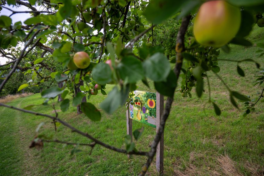 A special highlight is the viewing platform in an old apple tree. Accompanied by comic figures such as Yuppi and the bee Amelie, the path is especially suitable for families.