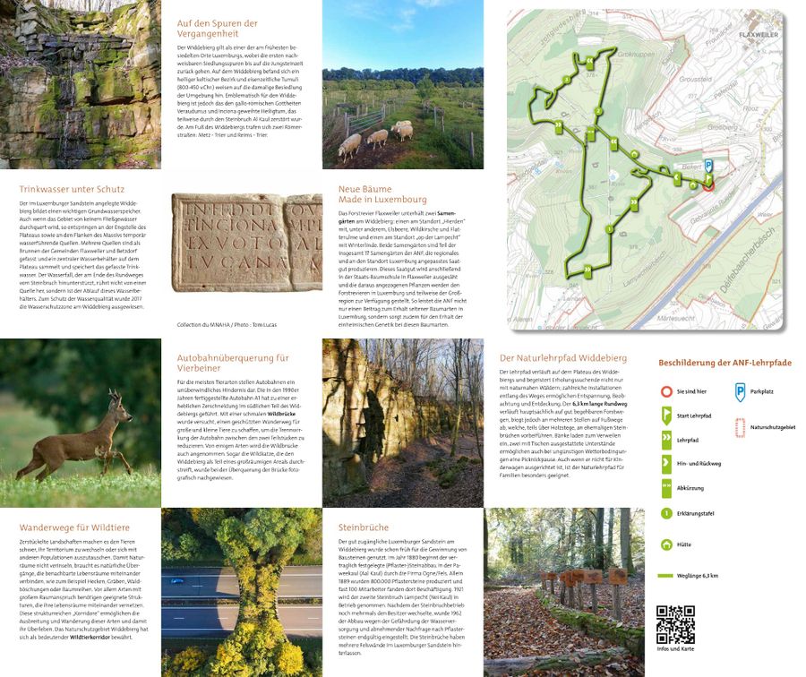 Nestled between Flaxweiler and Betzdorf lies the plateau of Widdebierg, offering a unique natural experience. A mosaic of ancient beech forests, historically significant quarries, peaceful springs, and protected habitats for rare species like the wildcat await you on this hike.