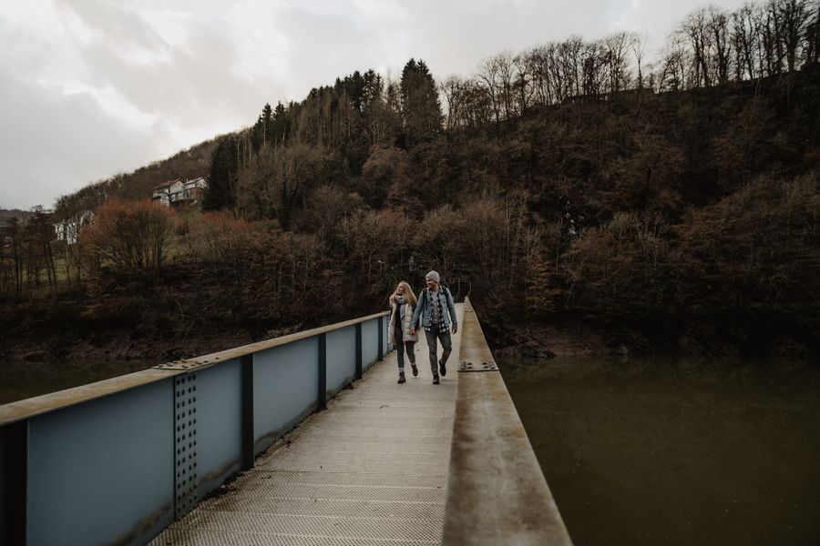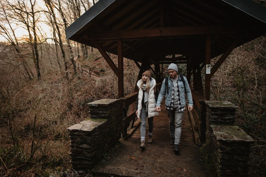 First, you go up the serpentine path to Luxembourg's only chairlift. Here you can enjoy the view over Vianden all the way to the castle. Afterwards, the path leads you back down into the valley, where you follow the riverside promenade to Bivels. The rocky border trail "Lätgesbierg" offers an almost alpine experience with a magnificent view. After so much up and down, stopping in Vianden is worthwhile.