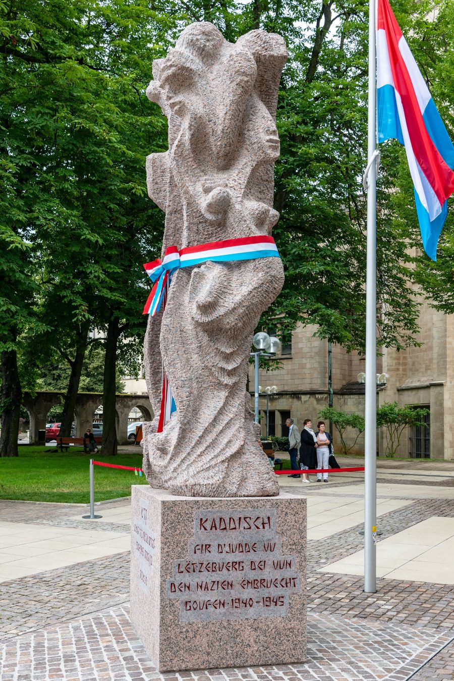 It ends at the Kaddish Monument (Boulevard Roosevelt), which commemorates the persecution, deportation and murder of more than 1,300 local Jews and those who fled to Luxembourg during the National Socialist dictatorship.