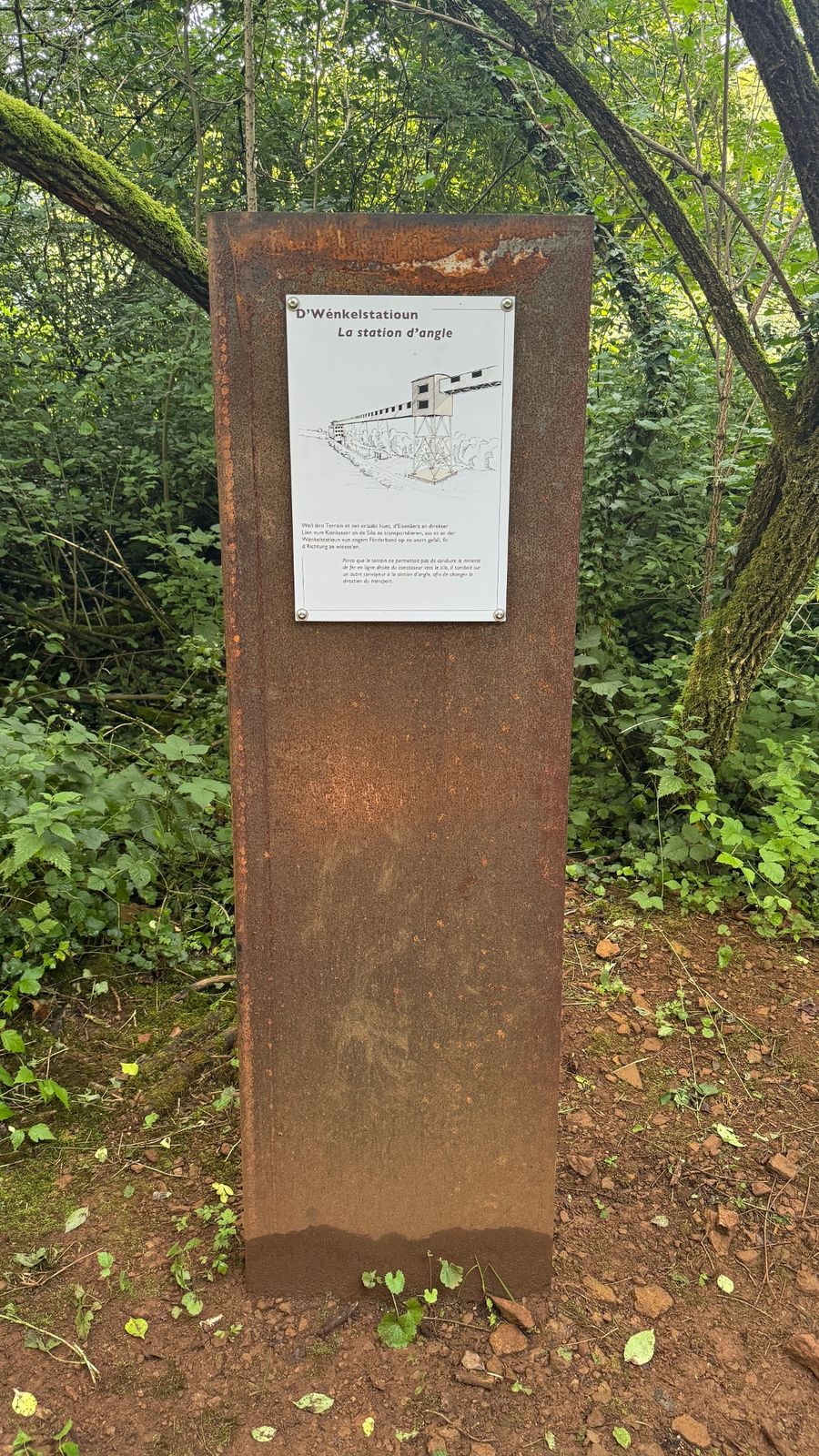 Together with artists from the DKollektiv, the "Wee vum Steen" shows in various ways how Minett stone was mined and finally transported to the blast furnace via conveyor belts and train wagons. Numerous information boards provide more detailed information about the mining and transportation processes. At the former crusher, a specially made sculpture shows the inner workings of the machine, showing how the Minett stones were crushed for further transportation.